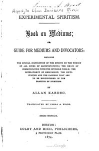 Experimental Spiritism: Book on Mediums, or, Guide for Mediums and Invocators: containing the special instruction of the spirits on the theory of all kinds of manifestations; the means of communicating with the invisible world; the development of mediumship; the difficulties and the dangers that are to be encountered in the practice of spiritism.