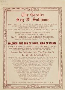 Including a clear and precise exposition of King Solomon’s secret procedure, its mysteries and magic rites. Original plates, seals, charms, and talismans.