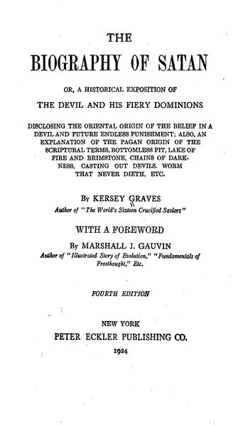 Or, a historical exposition of the devil and his fiery dominions; Disclosing the oriental origin of the belief in a devil and future endless punishment; also, and explanation of the pagan origin of the scriptural terms, bottomless pit, lake of fire and brimstone, chains of darkness, casting out devils. Worm that never dieth, etc.