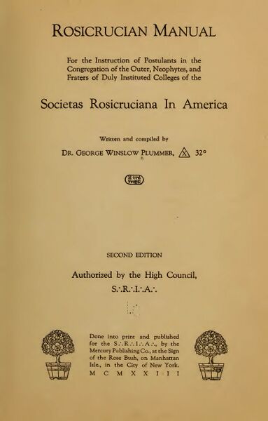 for the instruction of Postulants in the congregation of the outer, Neophytes, and fraters of Duly Instituted Colleges of the Societas Rosicruciana In America (second edition)