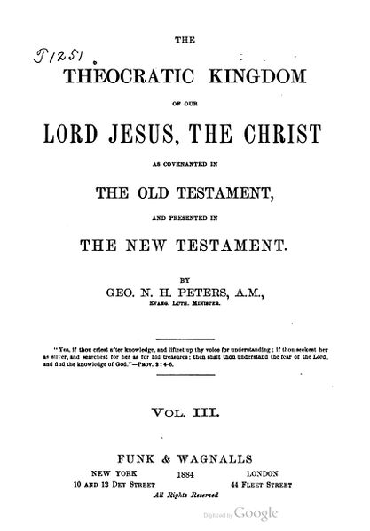The Theocratic Kingdom of Our Lord Jesus
