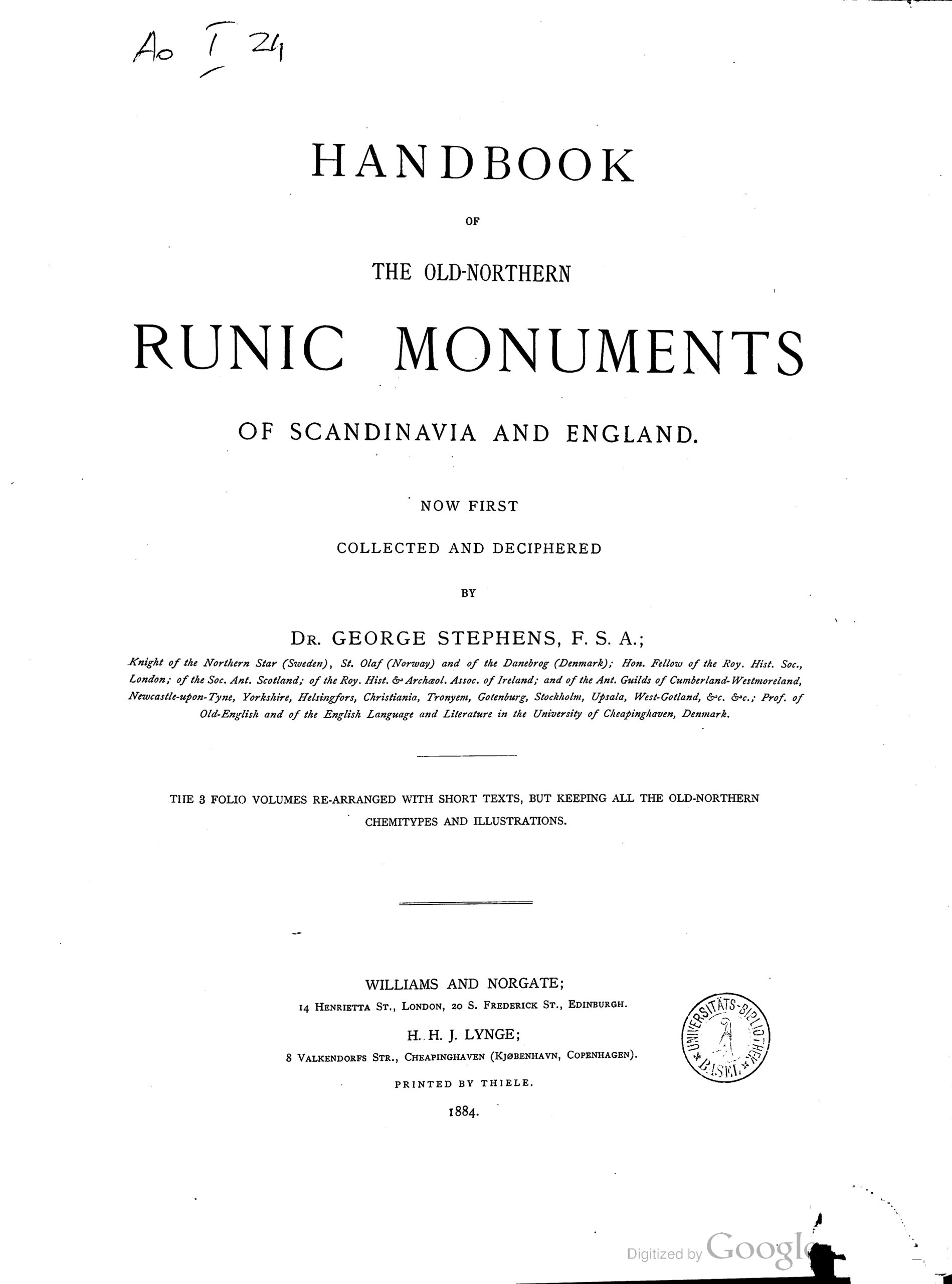 Handbook of the Old-Northern Runic Monuments of Scandinavia and England.