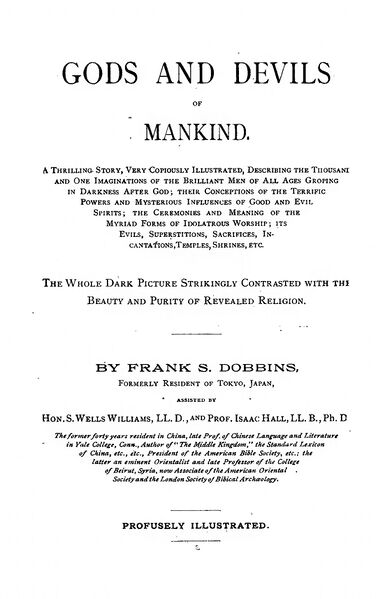 A thrilling story, very copiously illustrated, describing the thousand and one imaginations of the brilliant men of all ages groping in darkness after God; their conceptions of the terrific powers and mysterious influences of good and evil spirits; the ceremonies and meaning of the myriad forms of idolatrous worship; its evils, superstitions, scarifies, incantations, temples,…