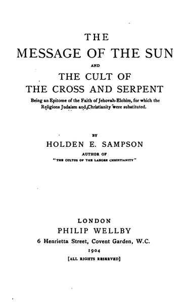 and The Cult of the Cross and Serpent; Being an epitome of the faith of Jehovah-Elohim, for which the religions Judaism and Christianity were substituted.