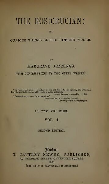 Indicating a method of discovering the true nature of Hermetic Philosophy; and showing that the search after The Philosopher’s Stone had not for its object the discovery of an agent for the transmutation of metals. Being also an attempt to rescue from undeserved opprobrium the reputation of a class of extraordinary thinkers in past ages.