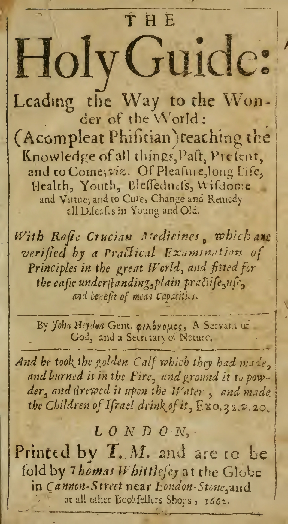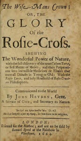 Being a discourse of God, Heaven, angels, stars, planets, earth; The miraculous descensions and ascensions of spirits, with the Nature and Harmony of man’s body; the art of preparing Rosie Crucian medicines to cure all diseases. Their rules to raise bodies decayed, which are verified by a practical examination of Principles in the great world.