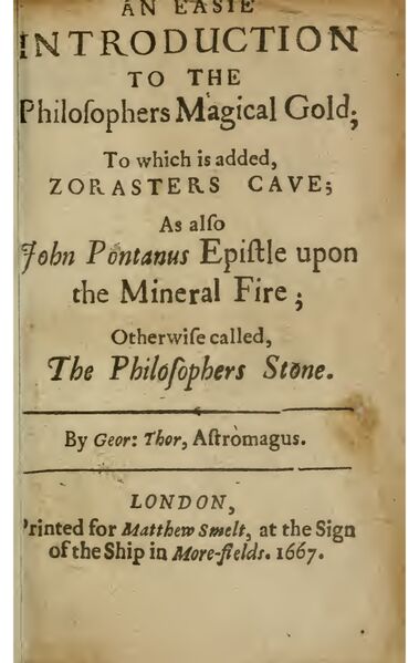 to which is added Zorasters Cave; as also John Pontanus Epistle upon the mineral fire; otherwise called, The Philosophers Stone.