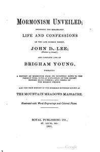Including the Remarkable Life and Confession of the Late Mormon Bishop John D Lee (Written by Himself); and Complete Life of Brigham Young, embracing a history of Mormonism from its inception down to the present time, with an exposition of the secret history, signs, symbols, and crimes of the Mormon church. Also the true story of the horrible butchery known as The Mountain Meadows Massacre.