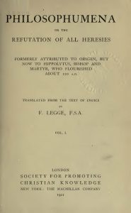 Volume 1. Formerly attributed to Origen, but now to Hippolytus, Bishop and Martyr, who flourished about 220 A.D.