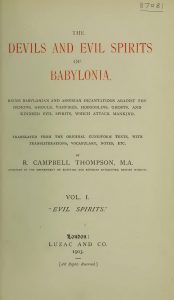 Volume 1 – Being Babylonian and Assyrian Incantations against the demons, ghouls, campires, hobgoblins, ghosts, and kindred evil spirits, which attack mankind.